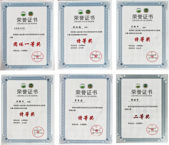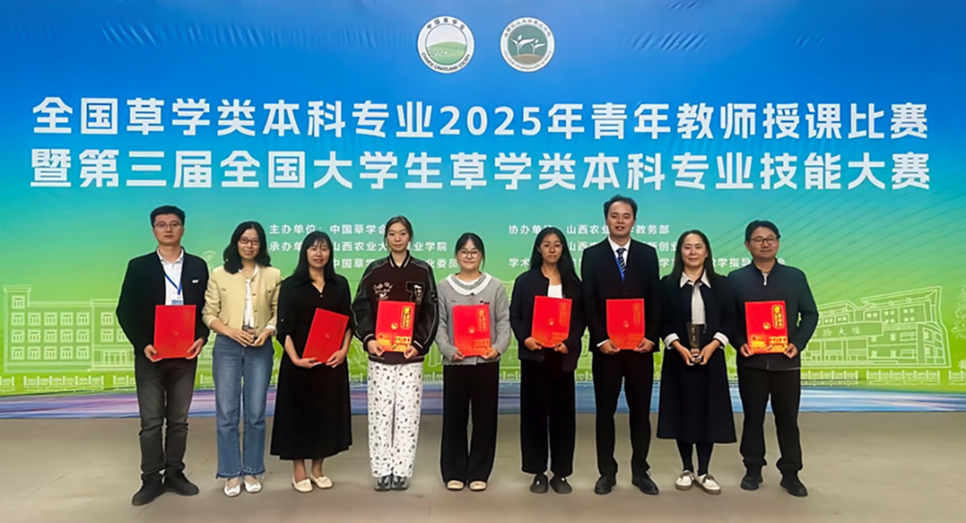 此外,在全国草学类本科专业2025年青年教师授课比赛中,学校单贵莲老师荣获特等奖,张建贵老师荣获二等奖,体现了beat365教师在草学教育教学方面的深厚积累与创新水平。